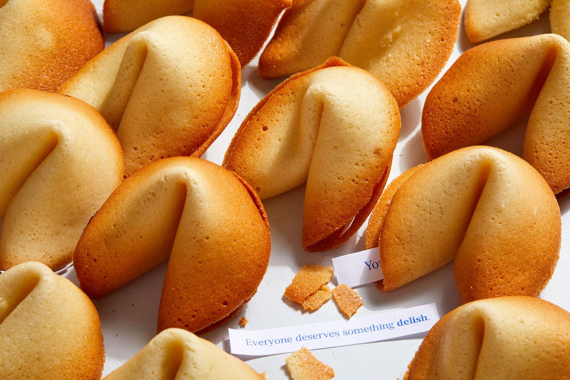 Crisp and Sugary cookie wafer made from flour, sugar, vanilla, and sesame seed oil with a piece of paper inside, a "fortune". Maybe your lucky numbers ???