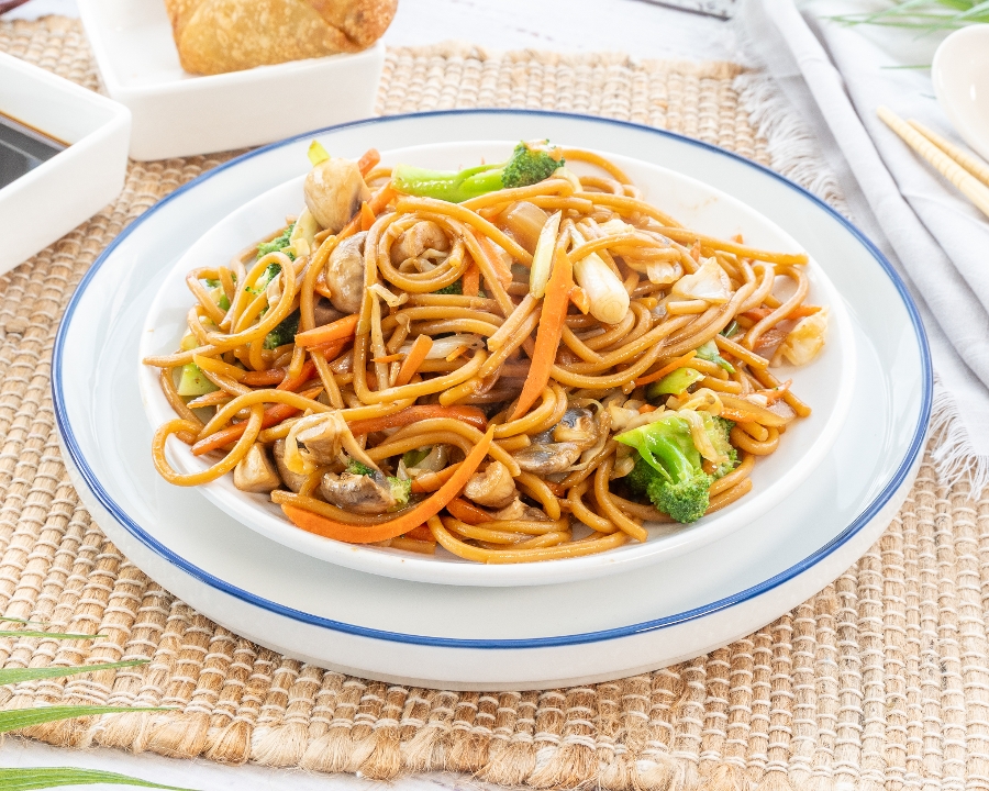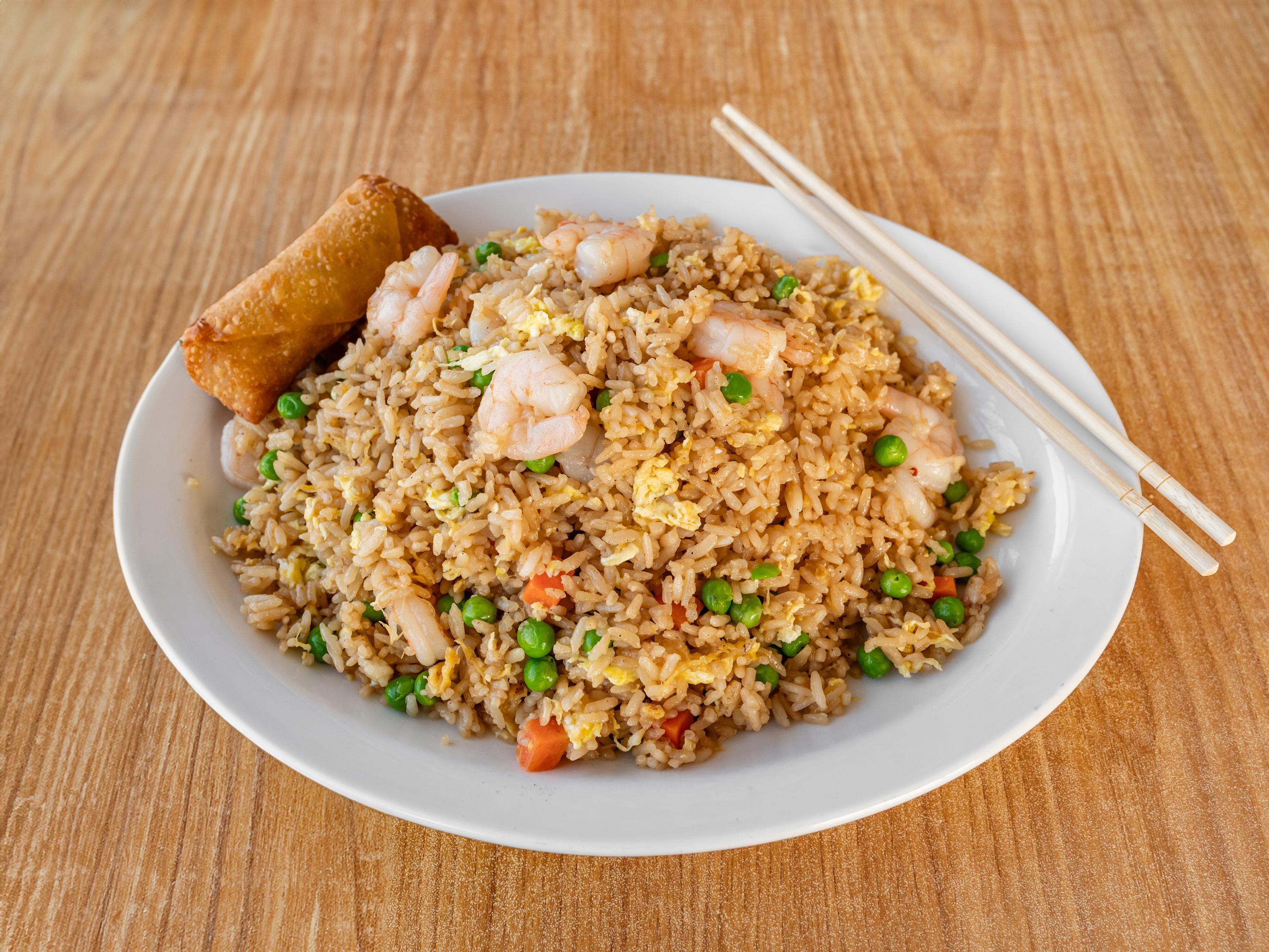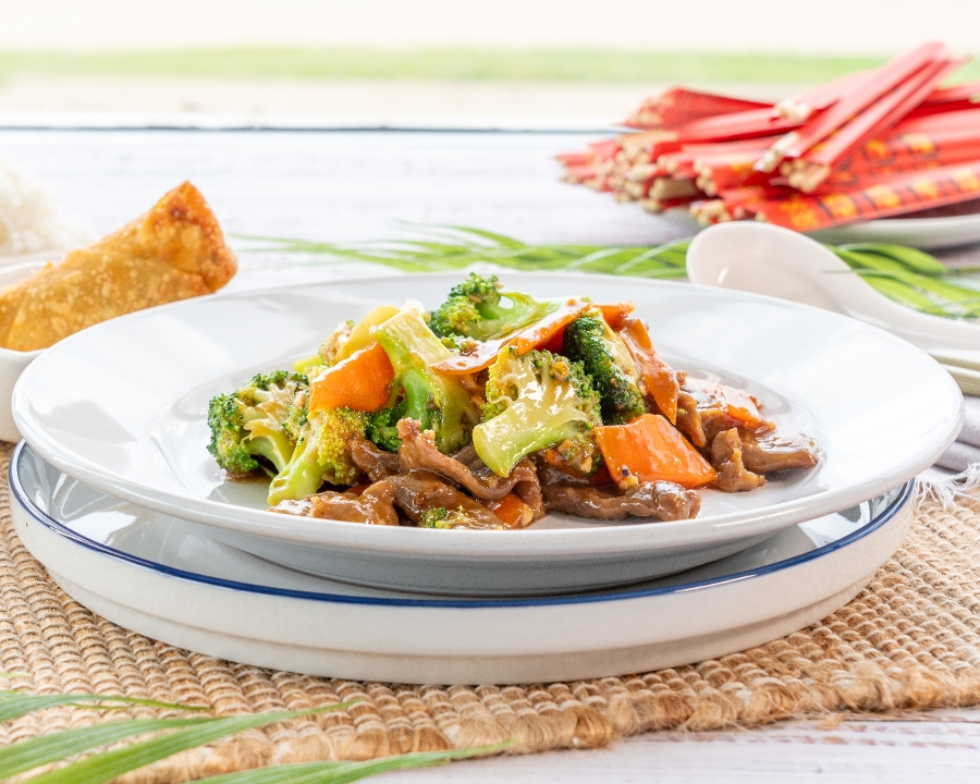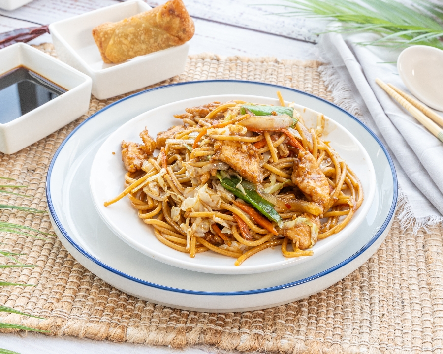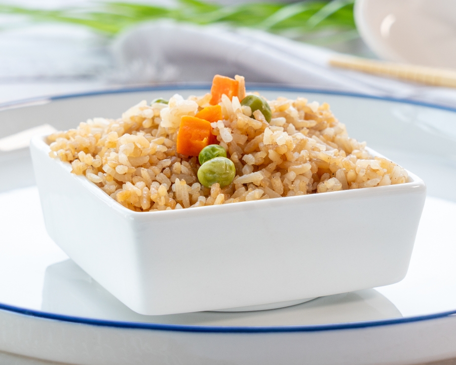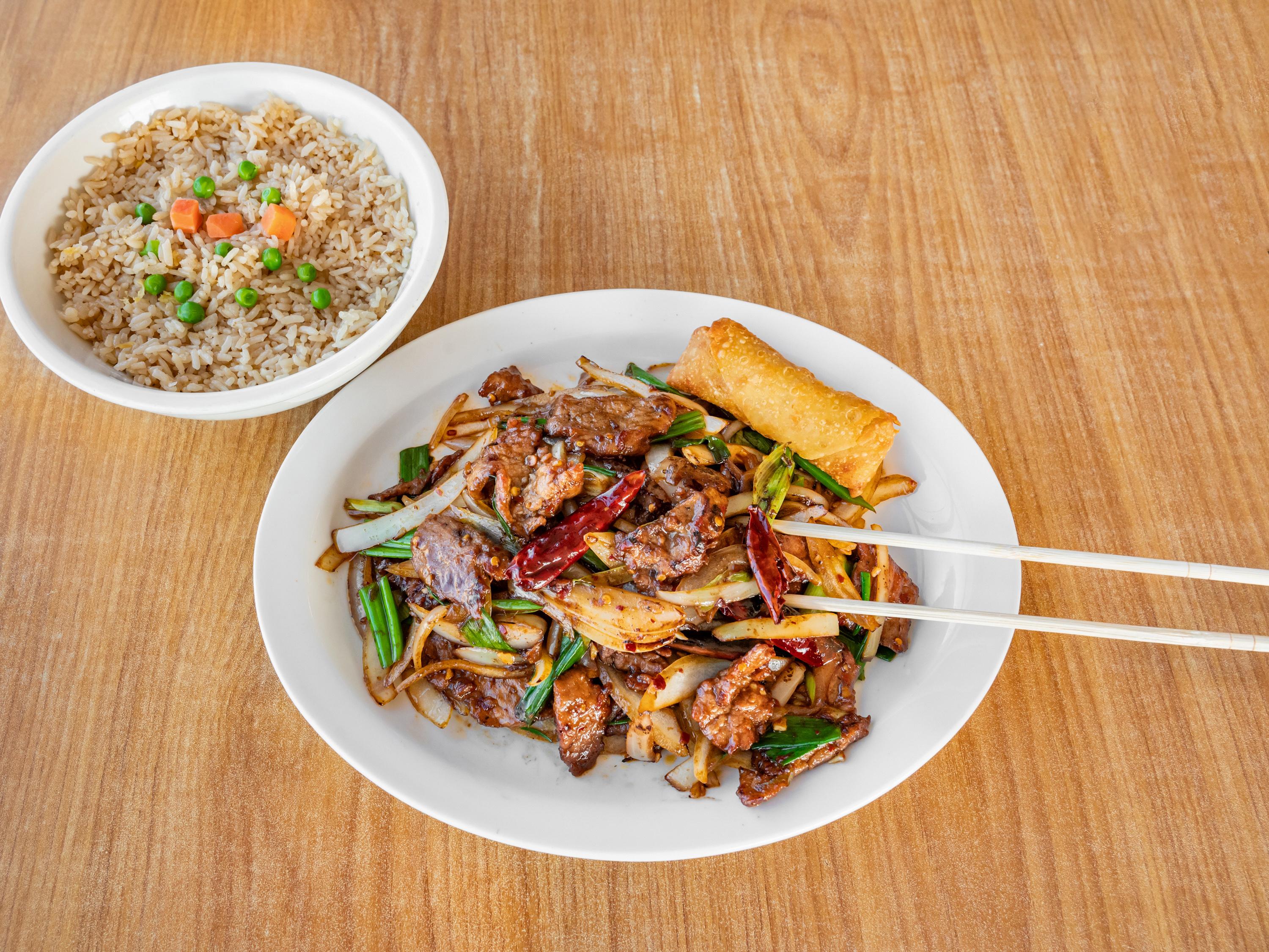 Sesame chicken features crispy, tender chicken pieces coated in a sweet and savory sesame sauce made with soy sauce, honey, garlic, and sesame oil. It's garnished with toasted sesame seeds for added texture. Choose between white rice, which is light and fluffy, or fried rice, offering a savory, slightly smoky flavor.