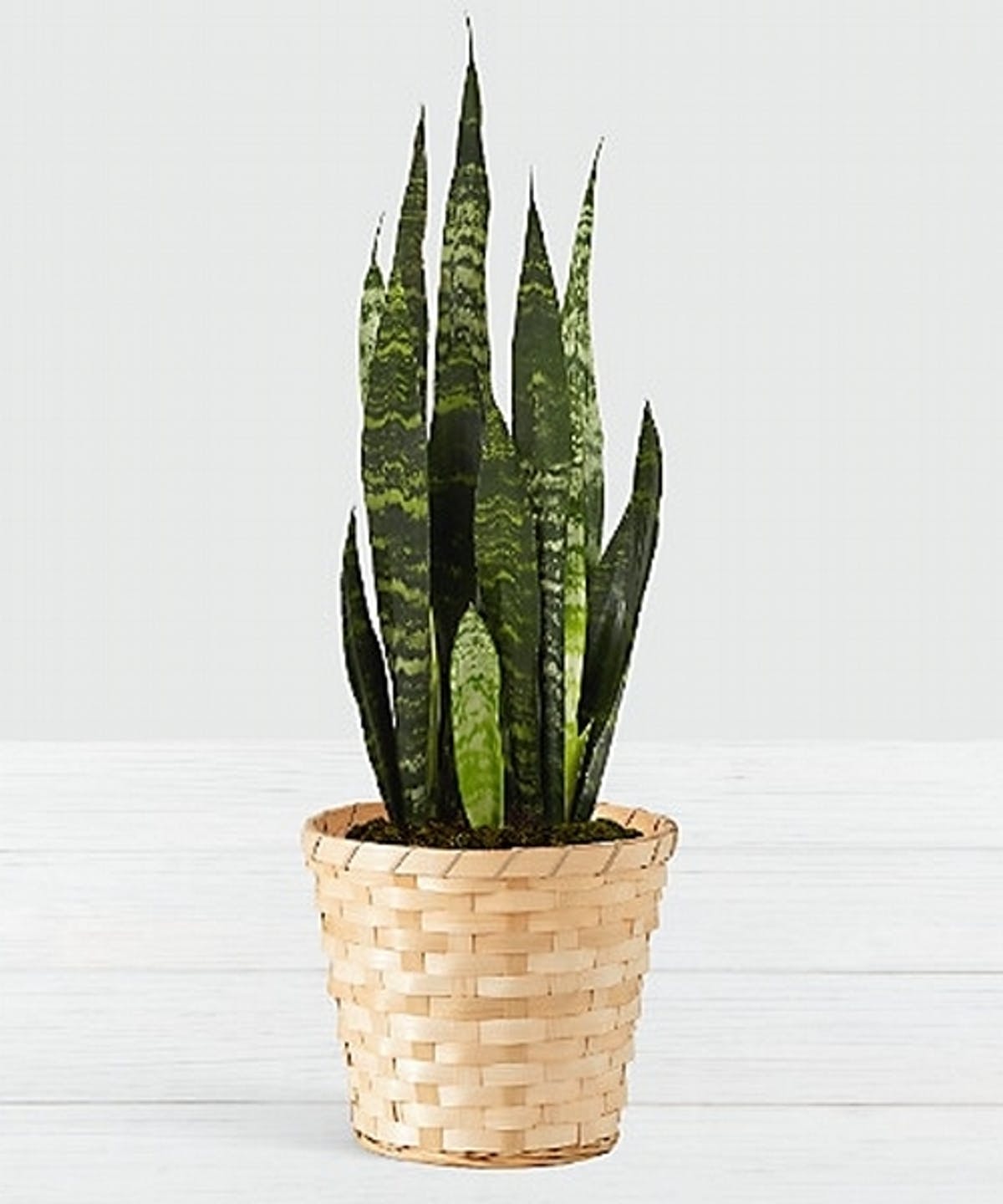 Modern and elegant, our Sansevieria floor plant (commonly called the Snake Plant or The Mother-In-Law Tongue) will add a touch of style to any space in their home, while helping to purify their air at the same time.